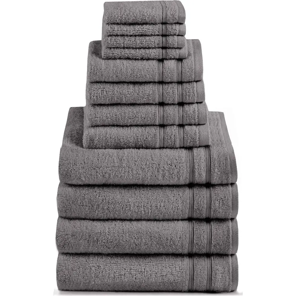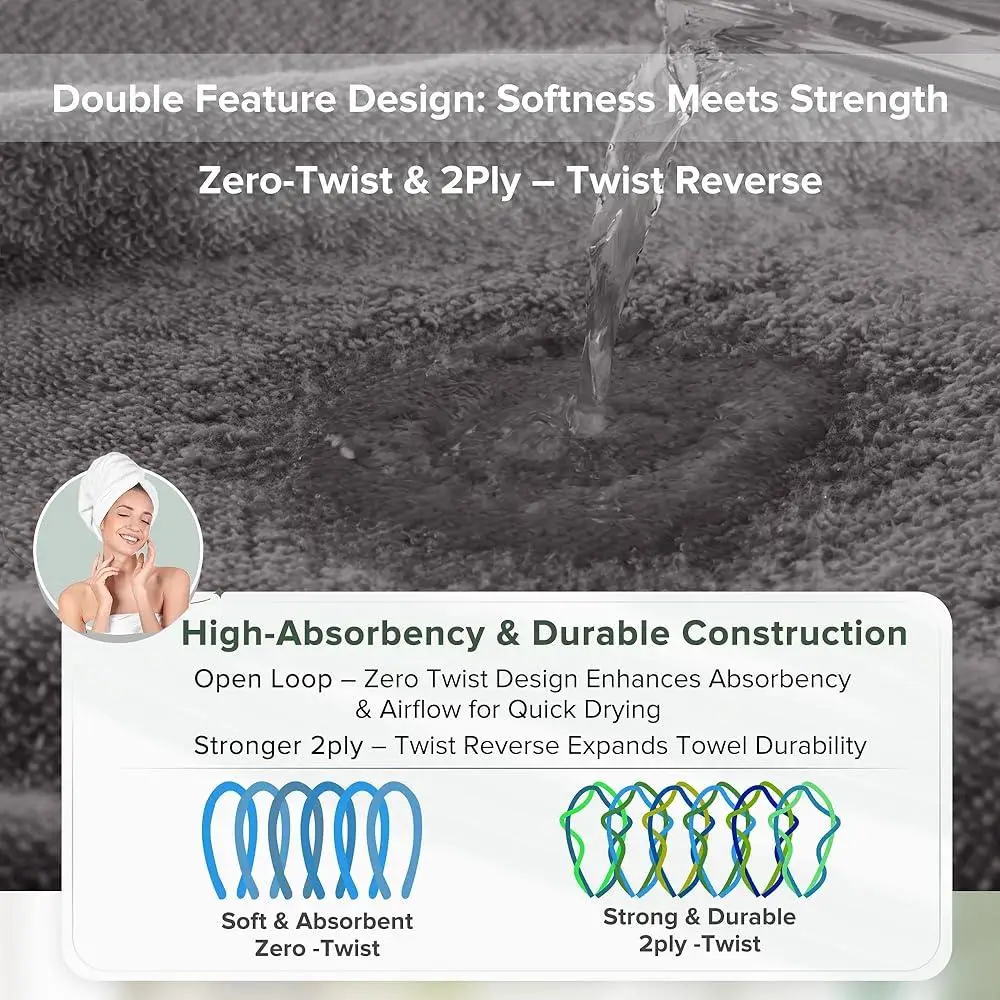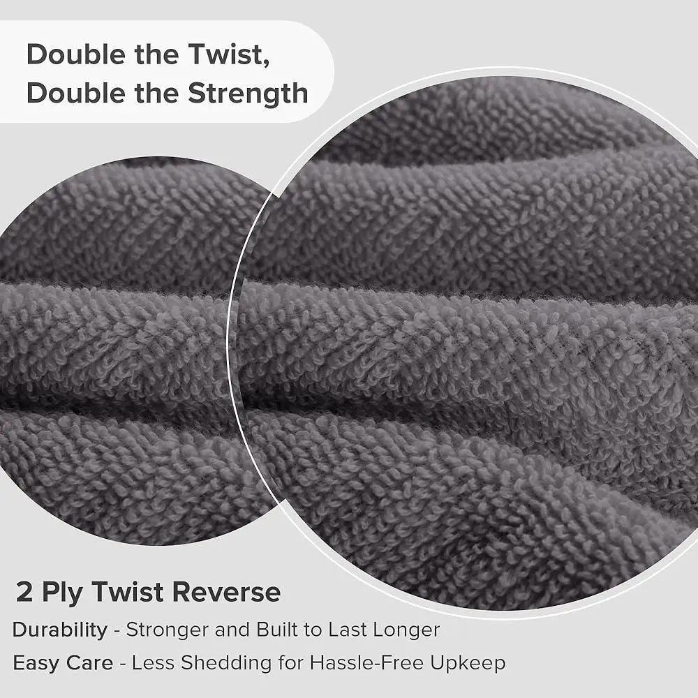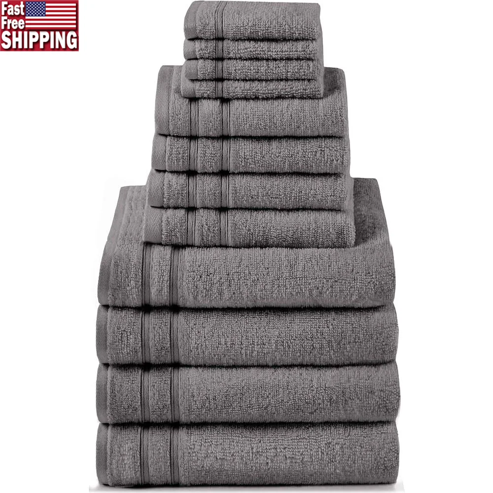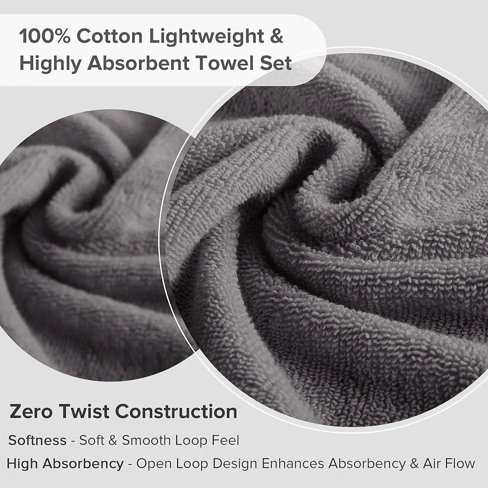 About this item 100% Cotton 100% Cotton: Elevate your daily routine with our Bath Towel Set, crafted from 100% cotton with smooth zero-twist yarns and a 400gsm weight. Enjoy a natural cotton soft feel that’s highly absorbent & quick drying for the ultimate comfort Quality Comfort: Our 400gsm cotton bath towel set offers generous coverage with dual-construction, zero-twist yarns for quick drying, high absorbency, and a plush, soft feel. The 2-ply twist reverse adds durability with reduced shedding Perfect Gif Set Bundle – Ideal gift for any occasion, especially for housewarming gift. Oeko-Tex CERTIFIED – Ensuring the use of non-toxic chemicals and substances, made in an environmentally friendly and socially responsible workplace Assorted Sizes Bath Grey Towel Set includes: 4 Bath Towels: 28″W x 52″ L, 4 Hand Towels:16″W x 26″L, 4 Wash Towels:12″W x 12″L Care: Our cotton towel set withstands daily wear, is fade-resistant, and durable. Machine wash cold on a gentle cycle with like colors. Use non-chlorine bleach only. Avoid benzoyl peroxide. Tumble dry low and remove promptly. Do not iron