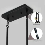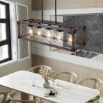 Farmhouse lighting: Kitchen island lamp is composed of redwood solid wood frame and ferrous and glass lampshade canopy. The slender black iron grille and 8 iron corner protectors highlight the industrial style of this restaurant's lighting fixtures, making it the perfect choice for kitchen island lighting. Size and wide application: Length: 31.5 inches, Width: 10.2 inches, Height: 33.5 inches. There is Four suspenders inside the box that allows for flexible adjustment of the hanging height of large chandeliers. Luminaires can be installed on flat, sloping, or arched ceilings. Bulb requirements: Maximum 5 bulbs , E26 base (excluding bulbs), 60W, compatible with LED, incandescent, CFL, and halogen. Wid ely used: The 5-light chandelier in farmhouses is very suitable for restaurants, kitchen islands, living rooms, entrances, foyers, corridors, porches, farmhouses, restaurants, bars, etc.
