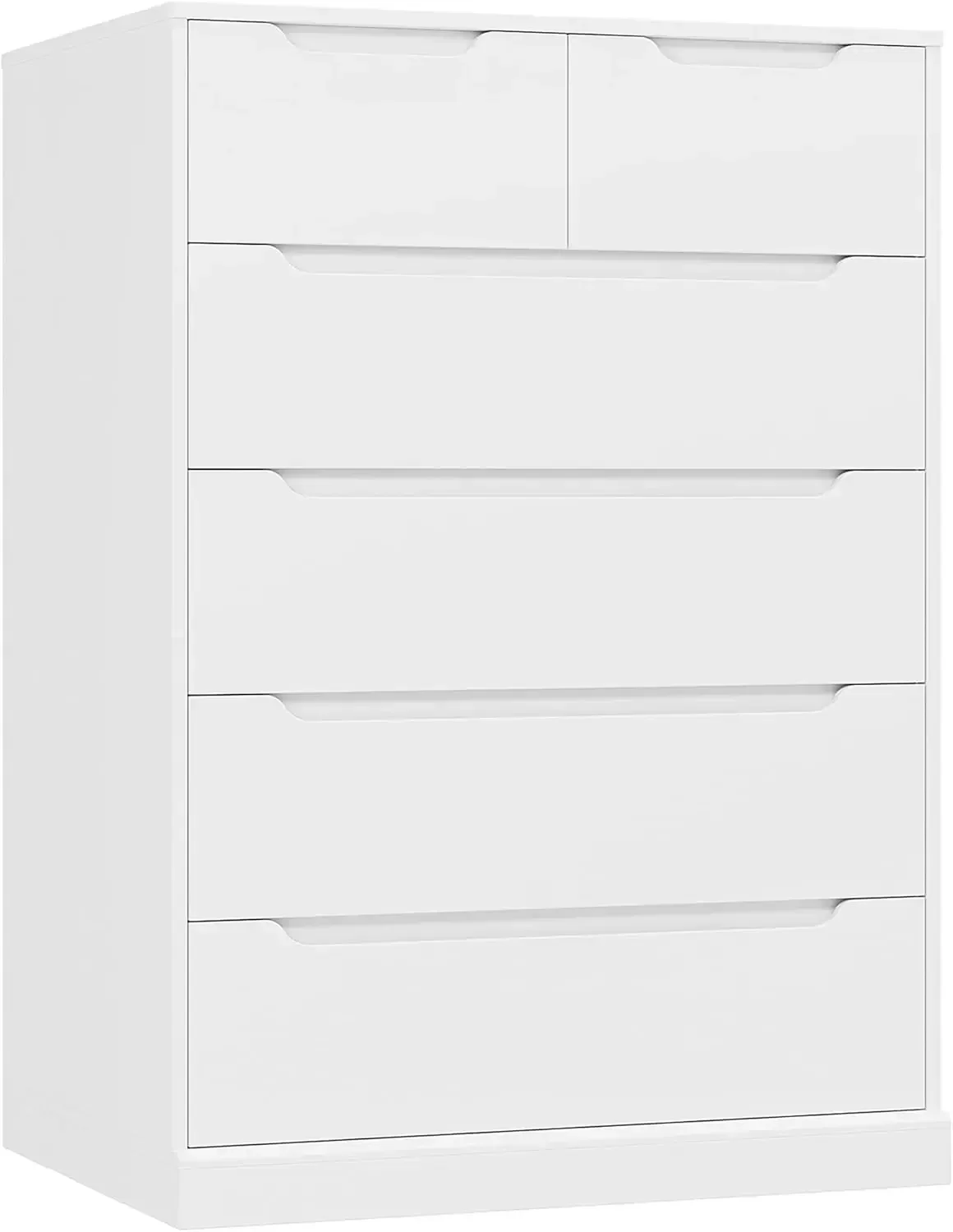 Modern 6 Drawer Dresser for Bedroom, Tall Chest of Drawers with Storage, Large Wood Storage Chest Organizer with Cut-Out Handle, Accent Storage Cabinet for Living Room, Entryway, Classic White