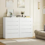 • STYLISH DRESSER FOR HOME: Created with clean lines and minimalist flat-front design, this chest of drawer can easily fit in any decorative style. Unique cut-out handles and elegant fully closed base create a contemporary, clutter free look for your room