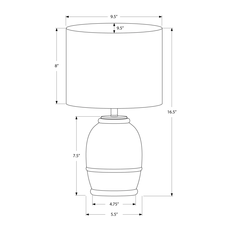- Product dimensions: 9.5 in. L x 9.5 in. W x 16.5 in. H; base: 5.5 in. L x 5.5 in. W x 7.5 in. H; beige shade: 9.5 in. L x 9.5 in. W x 8 in. H