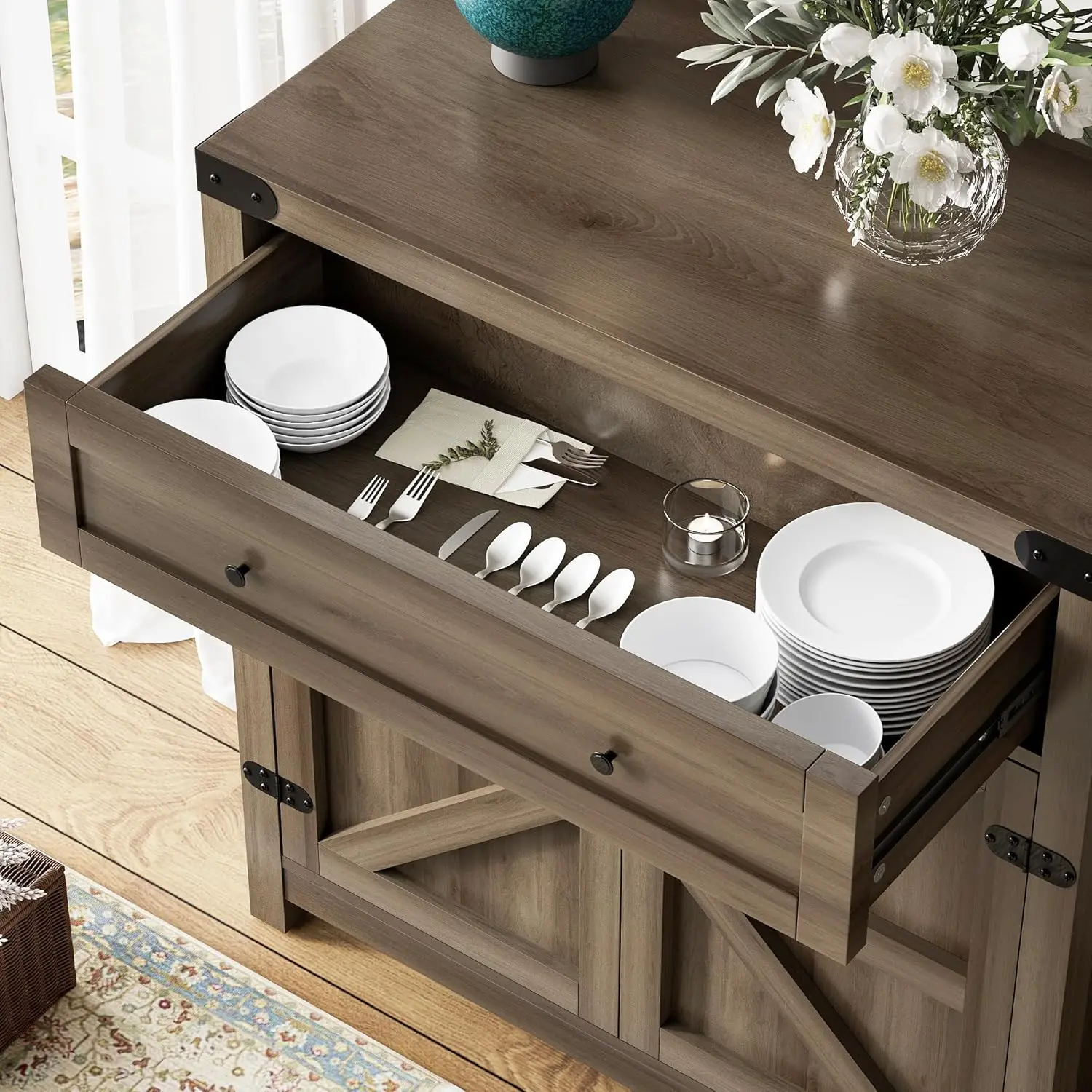 Easily blends in with any existing decorative theme such as modern, rustic, industrial, vintage,Large drawers to store dishes to avoid dust, bedroom storage cabinets, etc. Middle shelf can be adjusted up or down, or removed to accommodate larger items.