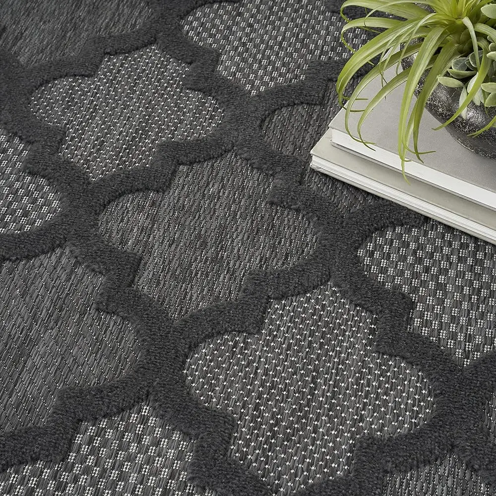 Easy Care Moroccan Charcoal/Bla 6′ X 9′ Area Rug, Trellis, Easy Cleaning, Non Shedding, Bed Room, Living Room, Dining Room, Backyard, Deck, Patio (6X9)