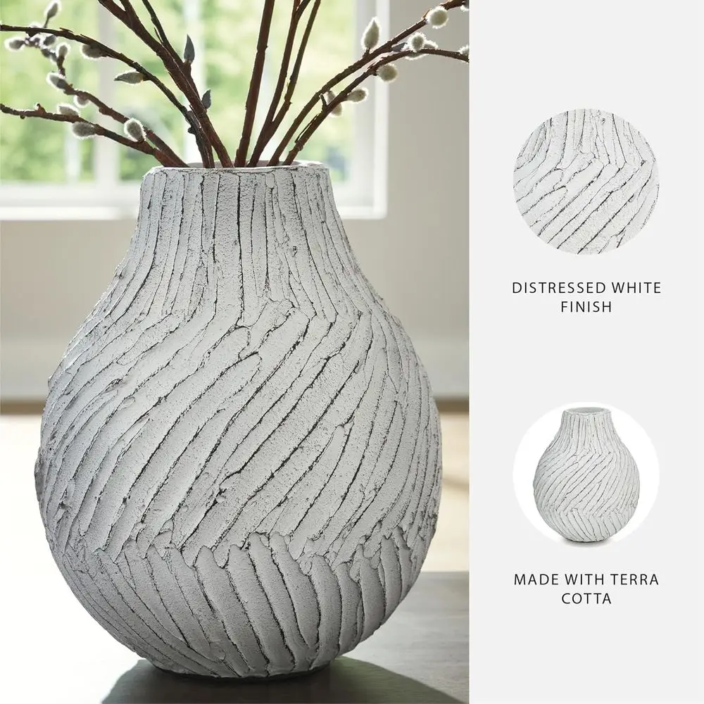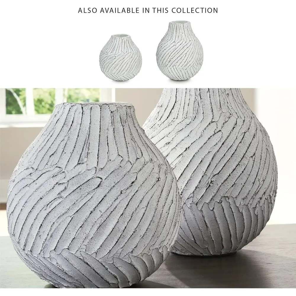 Casual Vase: This vase embodies the relaxed elegance of a timeless retreat. Its silhouette features a linear pattern with a distressed white finish, creating a wave-like texture. It’s stylish whether standing alone or grouped with other coastal-casual accents.