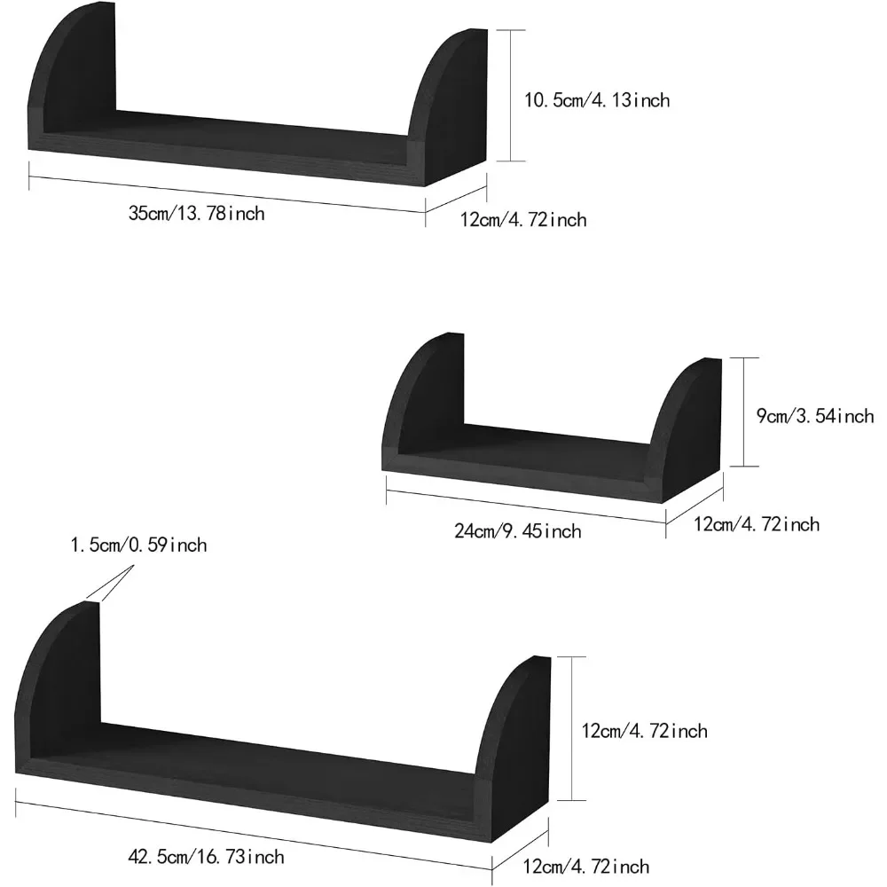 - Different Display Shelves – Assemble a unique wall display by 3 different size with more creative possibilities. L: 16.7×4.7×4.7in, M: 13.8×4.7×4.1in, S: 9.4×4.7×3.5in.
