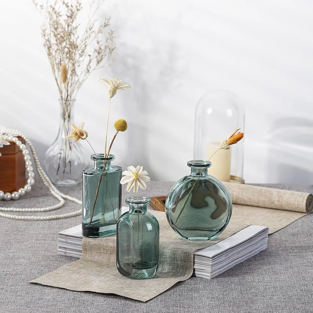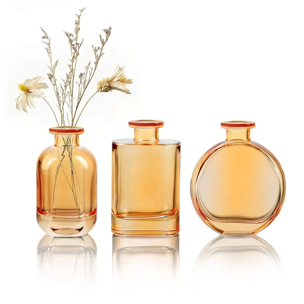 DESIGN STYLE: This set of glass vases is simple and stylish, creating an elegant home environment. The amber oval and oblate bottles give some freshness to the monotonous life.There is no doubt it's a perfect decoration for every occasion.||QUALITY MATERIAL: The height is 4.9(12.5cm)/ 4.9(12.5cm)/ 4.7(12cm), and the caliber is 0.7(2cm). The vase is made of high-quality glass to ensure durability and aesthetics.||MULTI-PURPOSE: The vases can provide beautiful decoration for your living room, bathroom, dining table, shelf, and they are also suitable for wedding, party, festival decoration. They work greatly with flowers or artificial flowers in floral arrangements.||PERFECT GIFT: It can be used not only for daily home decoration, but also an ideal gift for birthday, housewarming, Valentine's Day, Thanksgiving, Christmas or gifts for other anniversaries and occasions. Bring this vase to share the beauty with friends and family.||BRAND SERVICE: If you have any issue with our glass vase, please contact us without hesitation, and we will try our best to offer you a satisfactory solution within 24 hours.