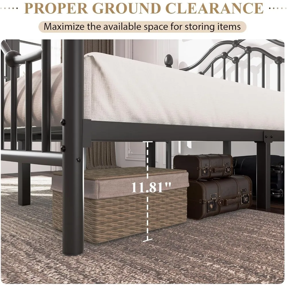 - 【Strong and Stable】: The black metal bed frame is made of heavy-duty metal and has an optimized structure to ensure stable and durable support for the mattress. It has a weight capacity of up to 1,200 pounds, allowing your family to sleep more comfortably and safely. The powder-coated surface features medium rust and scratch resistance for long term use