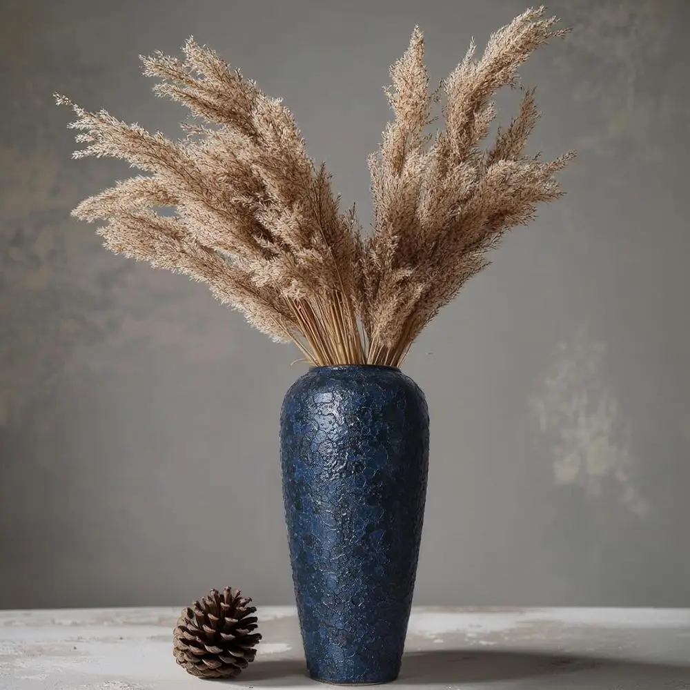 Versatile for a variety of floral arrangements and decorative displays, this vase is perfect for blue pampas grass, fresh flowers, dried arrangements, and greenery. It can also serve as a standalone decorative piece, imbuing character and style to your home. The wide mouth design accommodates different flower types, while the sophisticated finish elevates the ambiance of your space.