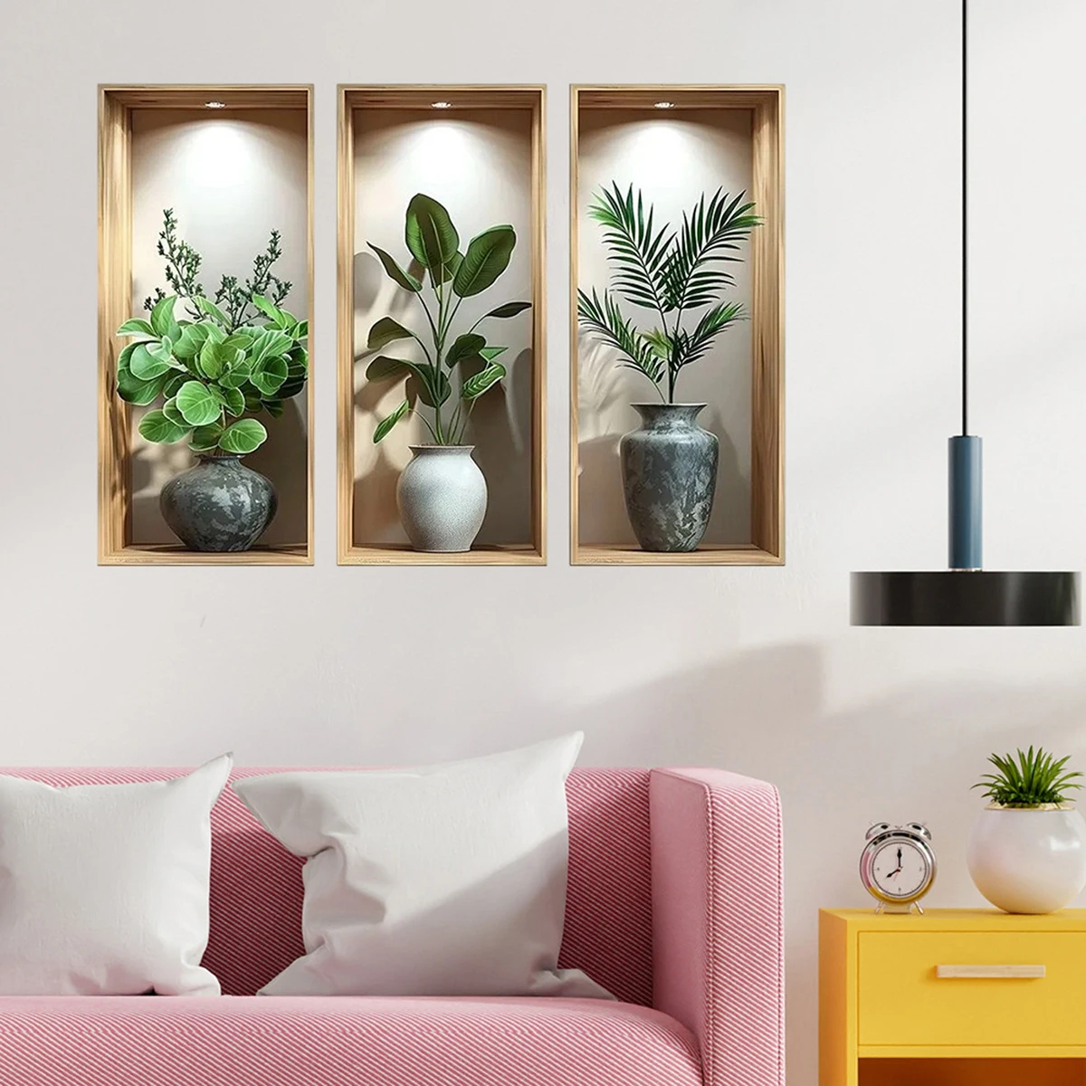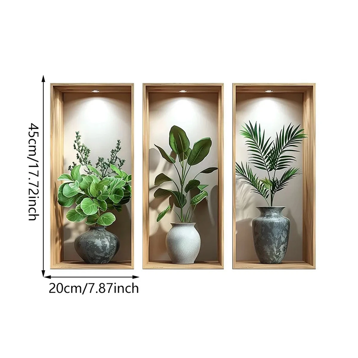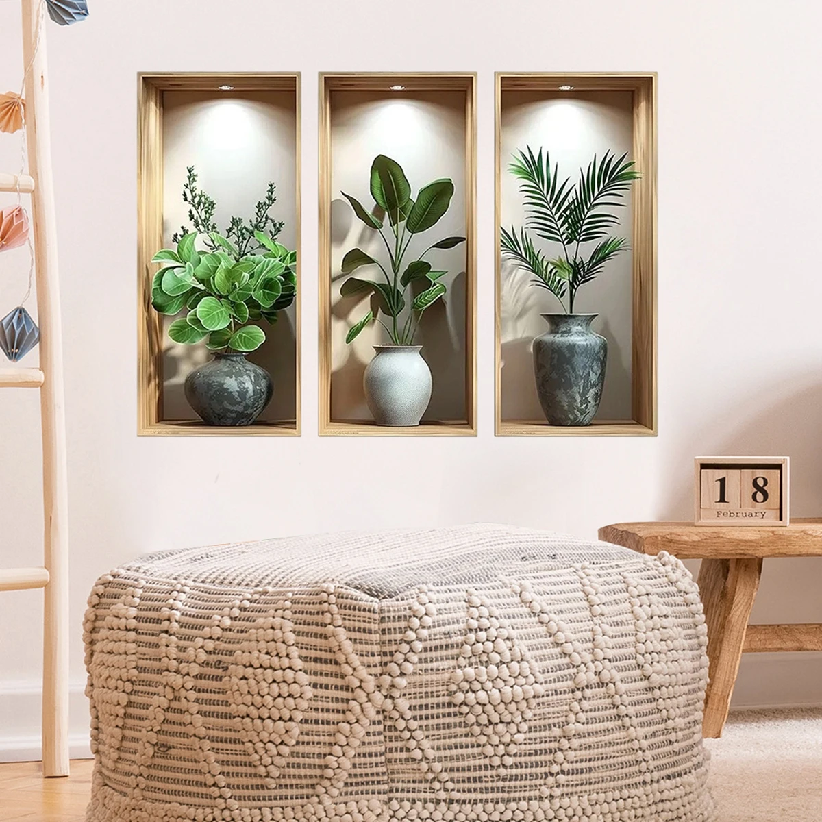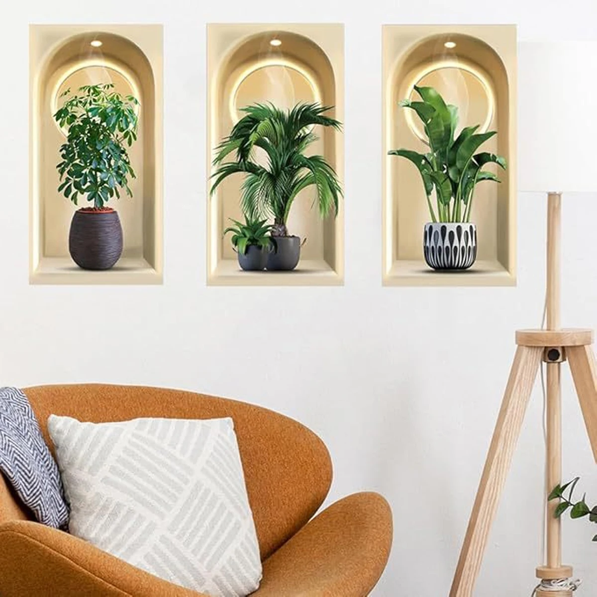 3D Potted Plant Wall Sticker Green Palm Leaf Devil’s Ivy Removable Wall Decals 3/4Pcs Set for Home Office