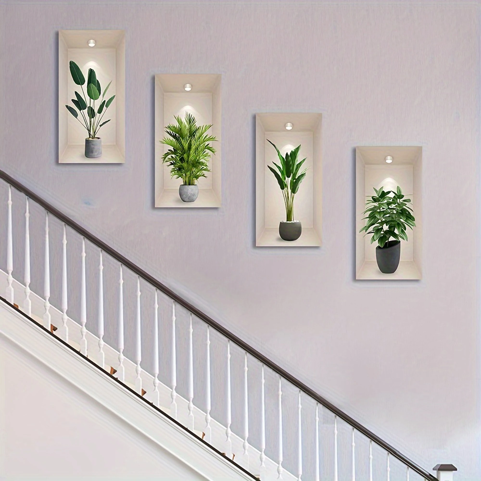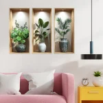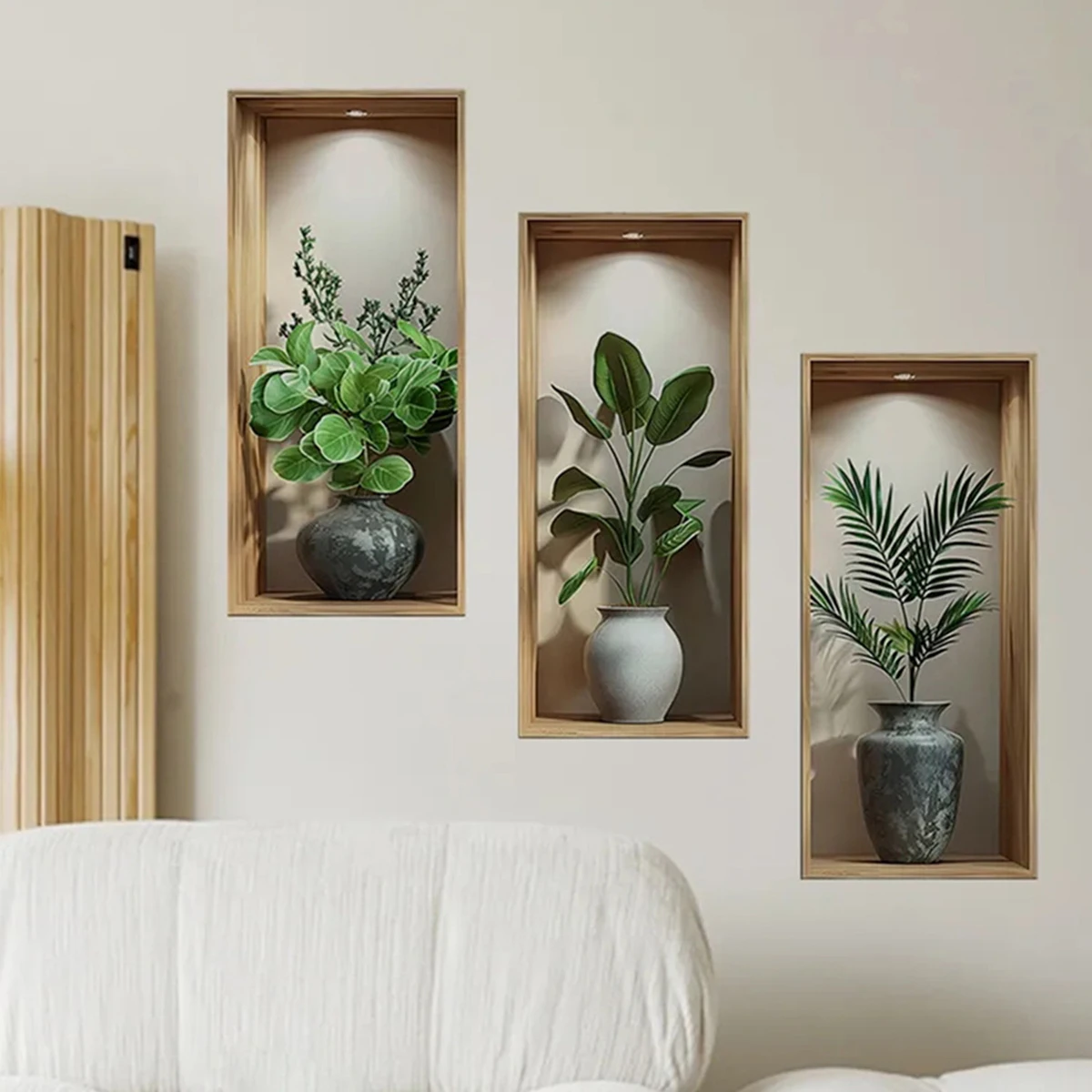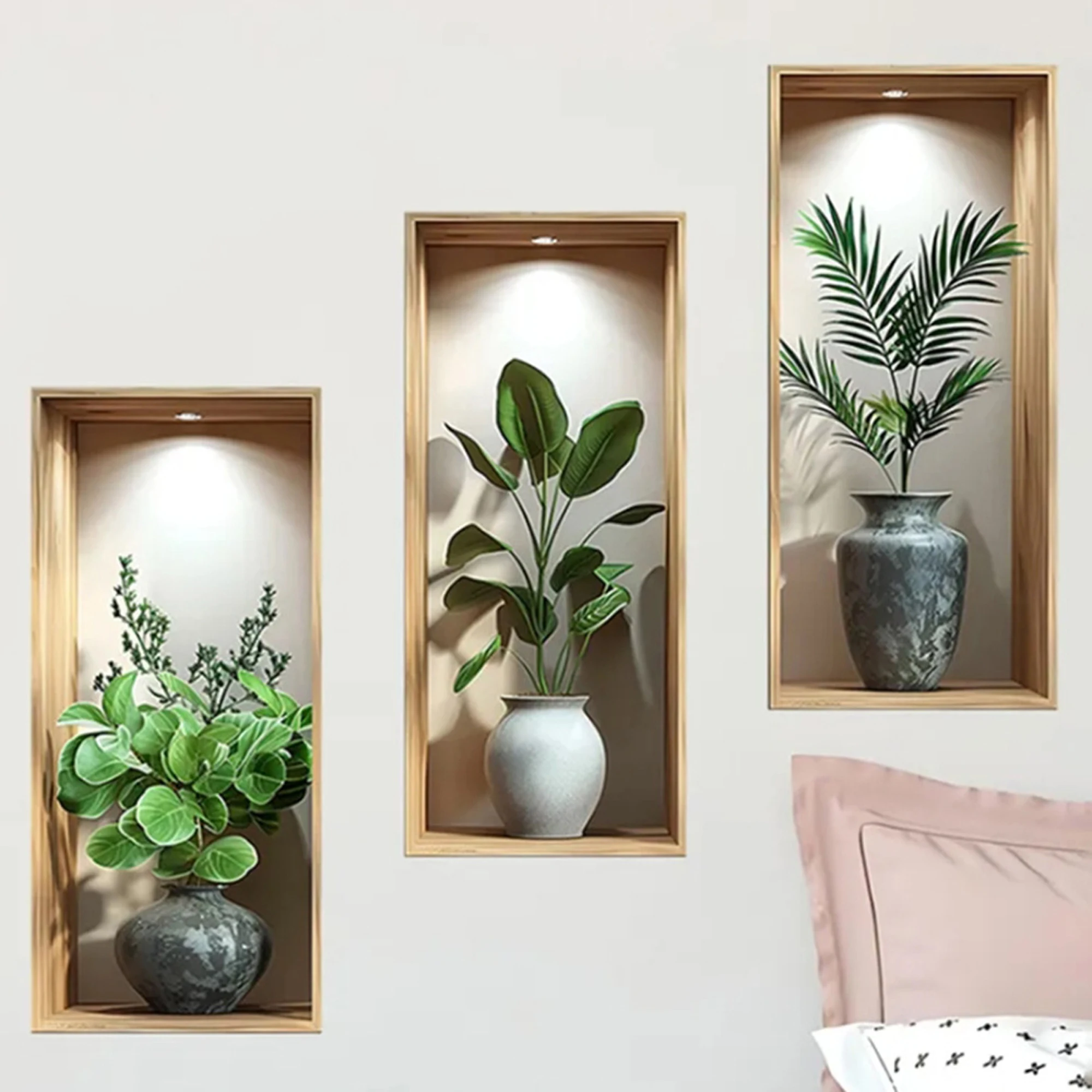 3D Potted Plant Wall Sticker Green Palm Leaf Devil’s Ivy Removable Wall Decals 3/4Pcs Set for Home Office